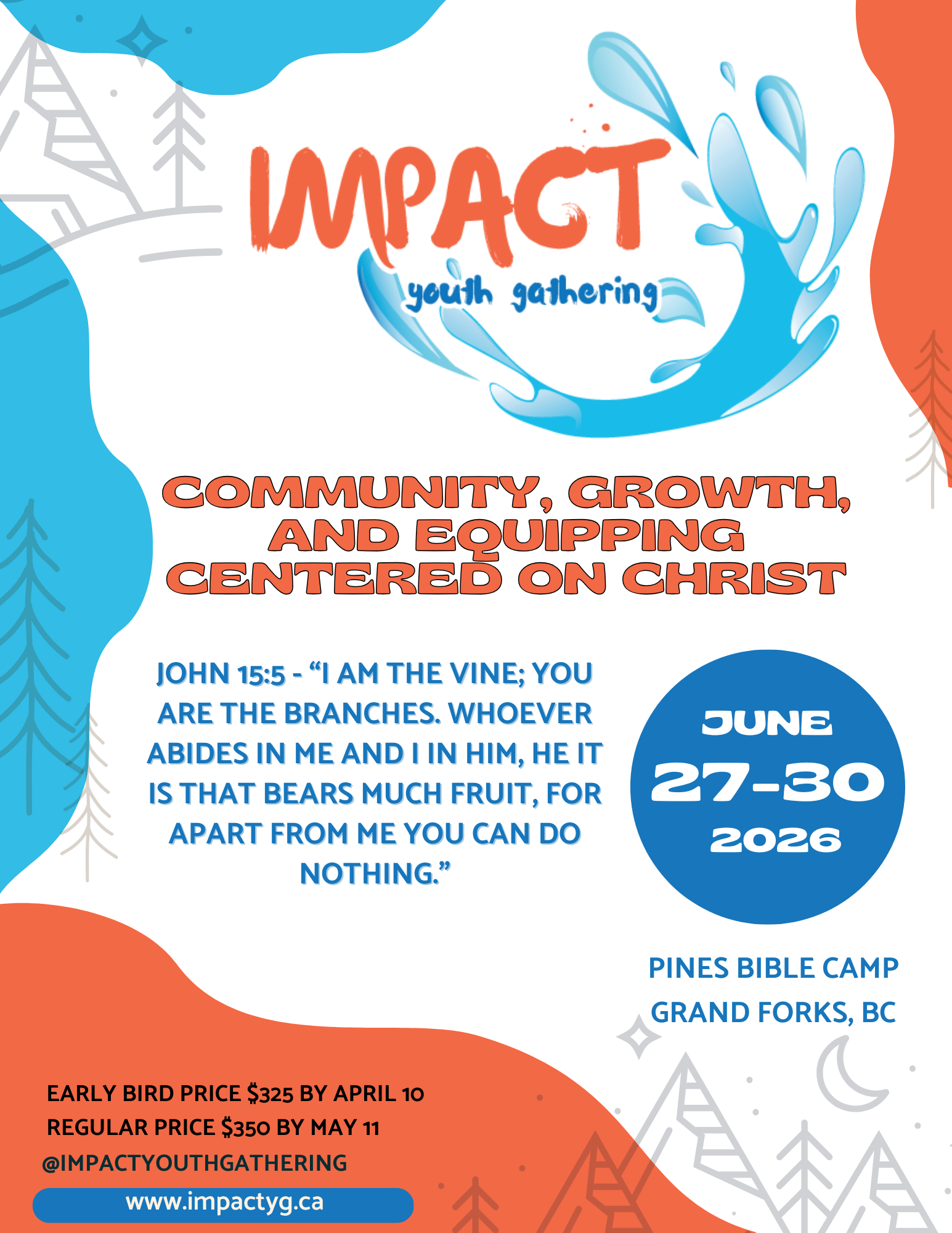 Registration packages are available on the registration page, and this site and our social media will be updated as more info becomes available. If you have questions in the meantime, please contact the gathering committee at impactyouthgathering@gmail.com.